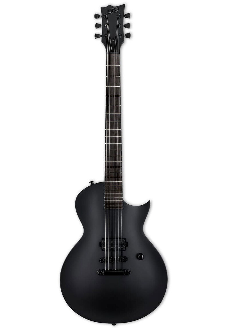 The LTD Black Metal Series are guitars that are comparable in build quality to our LTD Deluxe “1000 Series” instruments, but with a dark and menacing design theme of all-black finish, components, and hardware, a single premium-quality pickup, Macassar ebony fingerboards with no inlays and glow-in-the-dark side markers, and even a newly-designed black metal LTD logo on the headstock. The EC-Black Metal is based on the popular single-cutaway ESP Eclipse shape. It offers set-thru construction for smooth access to the highest frets at 24.75” scale. Its Seymour Duncan “Blackened” Black Winter pickup is mounted directly to the guitar’s body, and it includes LTD locking tuners.