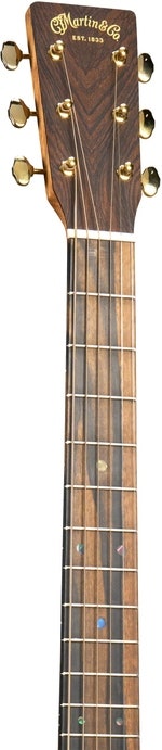 Sidenmatt Vintage Burst‑finish med Antique White‑binding, faux‑abalone‑detaljer skapar ett stilrent, inbjudande uttryck. Halsprofilen Performing Artist ger modern, mjuk spelkänsla. Inbyggd Martin E1‑elektronik med integrerad stämapparat gör gitarren redo för scen.