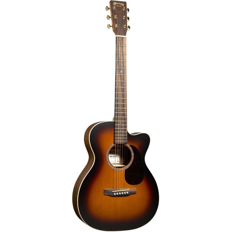 Artikelnummer 1097176Stålsträngad akustisk gitarr, 000C JR 14‑fret kroppsdesign, solitt granlock, bakstycke och sidor i solid svart valnöt, greppbräda i ebenholts, Martin E1 pickupsystem.