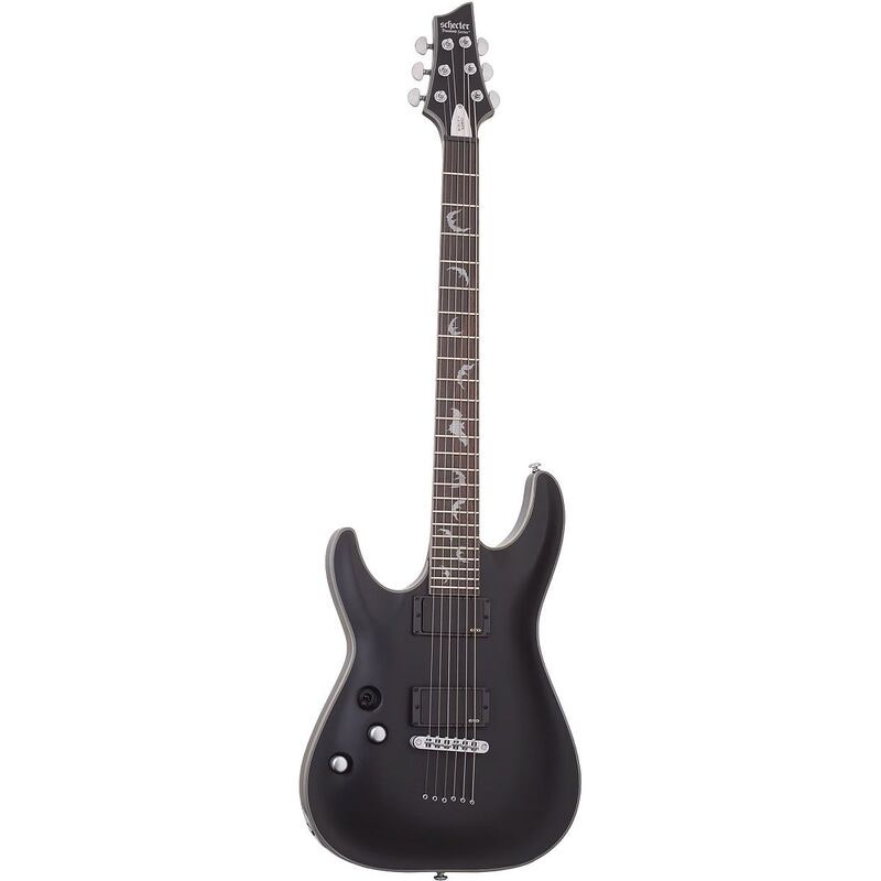 Schecter Damien Platinum-6 LH Satin Black – vänsterhänt metalgitarr med EMG-pickuper