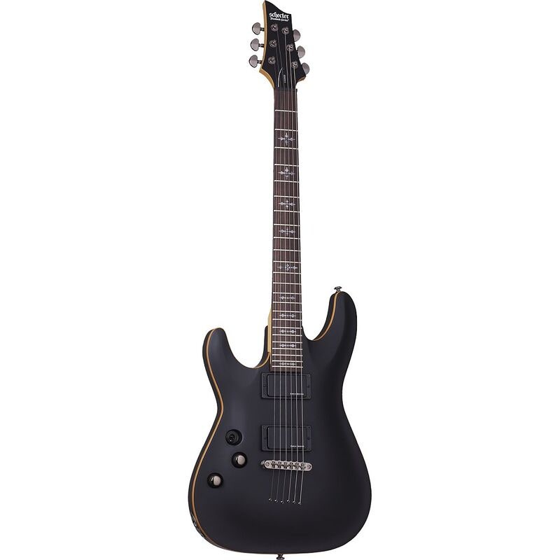 Schecter Demon-6 LH Satin Black – vänsterhänt metalgitarr med aktiva HB-105S-pickuper