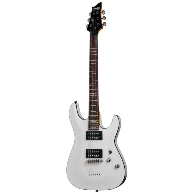 Schecter Omen 6 i Vintage White är en modern elgitarr som kombinerar stark prestanda, elegant estetik och imponerande spelbarhet. 2012 års uppdatering inkluderar Semi-Goth-inlägg i greppbrädan och smakfulla bindings som lyfter instrumentets helhetskänsla. Omen-serien är en av Schecters mest populära modeller, mycket tack vare dess professionella egenskaper till ett överkomligt pris.