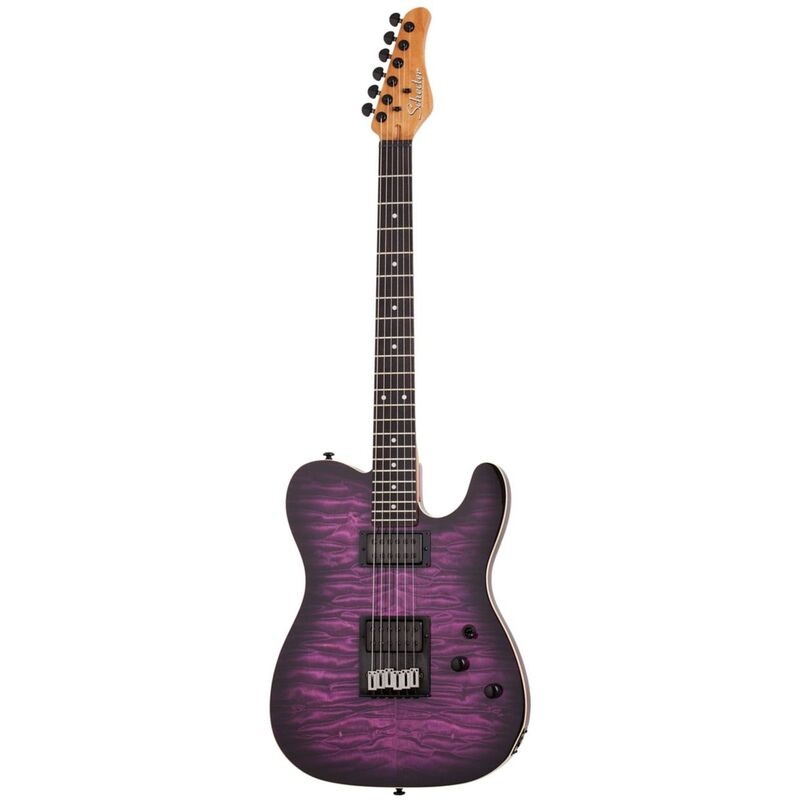 Schecter PT Pro Ebony i Trans Purple Burst är en modern och elegant T-stilsinspirerad elgitarr byggd för spelare som kräver professionell prestanda, stabilitet och tonal mångsidighet. Med en kropp i al och en bolt-on-hals i roasted maple kombineras resonans, tydlighet och hållbarhet. Greppbrädan i ebenholts ger snabb respons, tydlig attack och en lyxigt jämn spelkänsla.