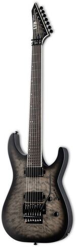 For those of you who like to explore the depths of extended range tunings, the LTD Deluxe M-1007 Baritone is a big contender for your next guitar. Offering set-thru construction for unobstructed access to the highest frets, the M-1007 baritone is a seven-string guitar built at a full 27” baritone scale, allowing for extreme downtuning while maintaining excellent string tension. It offers a comfortable and resonant alder body with an outstanding quilted maple top, and an extra-thin u-shaped three-piece maple neck. It has a bound Macassar ebony fingerboard with offset mother-of-pearl dot inlays and 24 extra-jumbo stainless steel frets, and a bound matching-finish reverse headstock. Components on the M-1007 Baritone include a Floyd Rose 1000 SE double-locking tremolo with stainless steel screws and precise Grover tuners. Its sound is powered by a set of direct-mounted Fishman Fluence Modern Humbucker active pickups (ceramic in the bridge and alnico in the neck), with push-pull control to select voicings and black nickel covers to match this guitar’s outstanding aesthetics. Each pickup offers two voices. With the ceramic bridge pickup, Voice 1 is the ultimate high-output ceramic humbucker bridge pickup tone, crisp, searing crunch, tight bass with no mud, and a growl. Voice 2 delivers modern passive attack performance that has superbly organic distortion characteristics with outstanding dynamics and response. The alnico neck pickup’s Voice 1 is Fishman’s modern active high-output tone, offering the ideal active alnico sound: full, round, and boosted, but with unprecedented articulation and dynamics. Voice 2 gives you the crisp, clean and fluid neck humbucker tone you’ve always wanted.