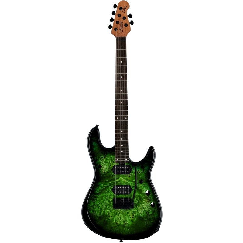 Gitarren är utrustad med specialdesignade Sterling by Music Man JR humbuckers som levererar hög output, bred dynamik. Elektroniken omfattar en push‑push volymboost med upp till 12 dB förstärkning samt push‑push coil‑split på tonkontrollen, vilket ger ett brett register från artikulerade rena ljud till massivt drivna disttoner. Låsbar mekanik, dual action truss rod samt fempunkts halsinfästning säkerställer stabilitet för både scen och studio.