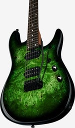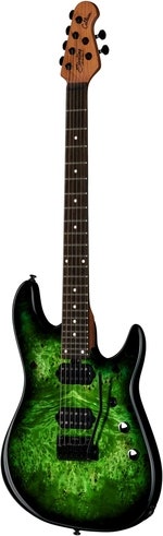 Artikelnummer 1097177Elgitarr, 7-strängad, kropp i al, burl-mönstrad topp i poppel, hals i rostad lönn, greppbräda i rosewood, SBMM JR humbuckers, 12dB volym boost, låsbar mekanik, tremolo
