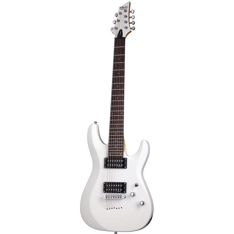 Schecter C-7 Deluxe Satin White är en sjusträngad elgitarr med basswood-kropp, flat top-design och skruvad lönnhals. Greppbrädan i rosewood har 24 X-Jumbo-band och dot-inlägg. Gitarren är utrustad med ett Tune-O-Matic-stall med strängföring genom kroppen och två Schecter Diamond Plus-humbuckers.