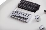 Schecter C-8 Deluxe Satin White är en åttasträngad elgitarr med basswood-kropp, skruvad lönnhals och greppbräda i rosewood. Modellen har 24 Narrow X-Jumbo-band, grafitsträngmutter och ett Tune-O-Matic-stall med strängföring genom kroppen. Pickupkonfigurationen består av två Schecter Diamond Plus-humbuckers.