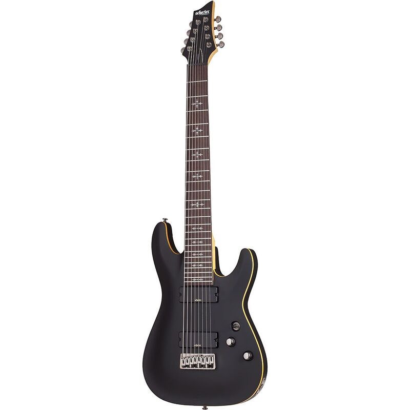Schecter Demon-8 Aged Black Satin – 8-strängad metalgitarr med aktiva HB-105S-pickuper