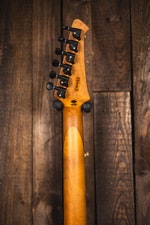 Kroppen i rostad poppel kombineras med en hals i rostad lönn med modern D-profil. Ebenholts-greppbrädan har 14-tums radie och 24 jumbo-band för maximal kontroll och komfort. Ben-sadeln (43 mm bredd) och dubbelverkande dragstång säkerställer optimal justerbarhet och hållbarhet.