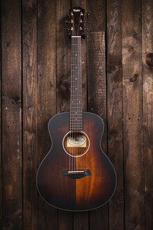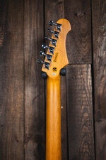 Kroppen är tillverkad i basswood, ett träslag som ger låg vikt och balanserad resonans. Gitarren har en blank Sunburst-finish som tillsammans med den rostade lönnhalsen ger ett visuellt uttryck med tydlig vintagekaraktär. Åldrade plastdetaljer och flerskiktat plektrumskydd i Parchment förstärker det klassiska intrycket.Hals, greppbräda och spelkänsla