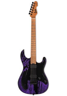Guitars in the LTD 1000 Series are designed to offer the tone, feel, looks and quality that working professional musicians require in an instrument. Based on the traditional look of ESP’s Snapper guitar shape, the SN-1000HT adds the high-performance tools needed for contemporary music. It has a swamp ash body at 25.5” scale, with a roasted maple neck and maple fingerboard with stainless steel frets that include scalloping from #17-22. The SN-1000HT offers a dual humbucker pickup configuration, employing a Seymour Duncan sentient in the neck and a high-output Pegasus in the bridge, with push-pull control to split the pickups. It also includes a Hipshot fixed hardtail bridge. The SN-1000HT is offered in a sandblasted Purple Blast finish.