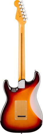 The Fender® American Ultra II Stratocaster® HSS features a select alder body with sculpted body contours. For effortless playability, the quartersawn maple neck features our Modern D profile and smooth Ultra Satin finish. Ebony or quartersawn maple 10”-14” compound radius fingerboards feature Ultra rolled edges, medium-jumbo frets, Luminlay® side dots and Graph Tech® TUSQ® nuts. The tapered neck heel and sculpted body contours allow unparalleled access to the higher register.