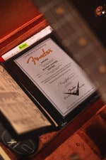 Other premium features include 9.5" radius, 21 narrow tall (6105) frets, Fat '50s 1/2 Blender Strat® wiring with Greasebucket™ tone circuit, 5-way switch, 3-ply mint green pickguard, Custom Shop vintage synchronized tremolo, vintage-style tuning machines, bone nut, wing string tree with tall metal spacer, deluxe hardshell case, strap and certificate of authenticity.