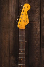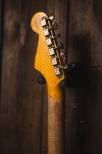 New for 2024, the Fender Custom Shop introduces the 1963 Stratocaster® Super Heavy Relic®. The lively, resonant two-piece select ash body is paired with an extremely comfortable playing rift sawn maple neck with ’63-style “C” back-shape and round-laminated rosewood fingerboard for a quintessential early-‘60s Strat®.
