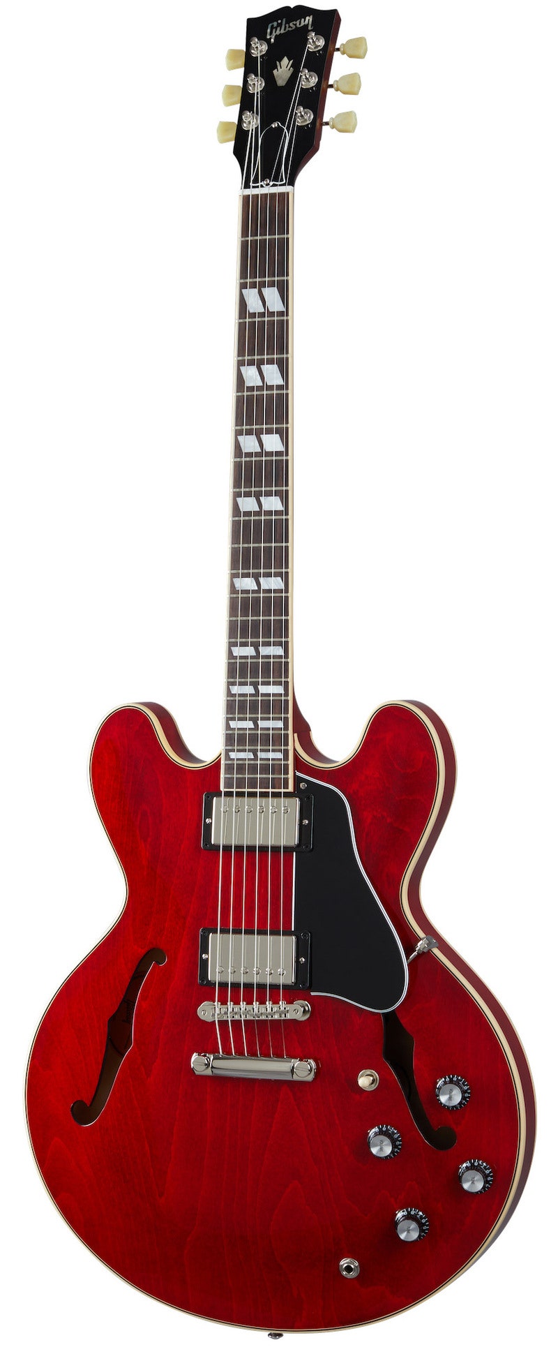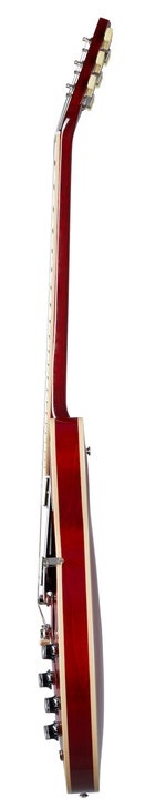 The Gibson ES-345 boasts a number of aesthetic enhancements over the flagship ES-335. Crafted with a maple centerblock and quarter-sawn Adirondack spruce bracing, players will be impressed by the lightweight feel and expanded range of tonal capabilities. The body is wrapped in multi-ply binding and the bound fingerboard has Split Parallelogram inlays exclusive to this model in the ES™ series. The ES-345 is equipped with a variety of high-end appointments like our hand-wired control assembly with Orange Drop® capacitors, Gibson's new Calibrated T-Type humbucking pickups, Vintage Deluxe style tuners and lightweight aluminum ABR-1 bridge and Stop Bar tailpiece anchored with steel thumb-wheels and studs.