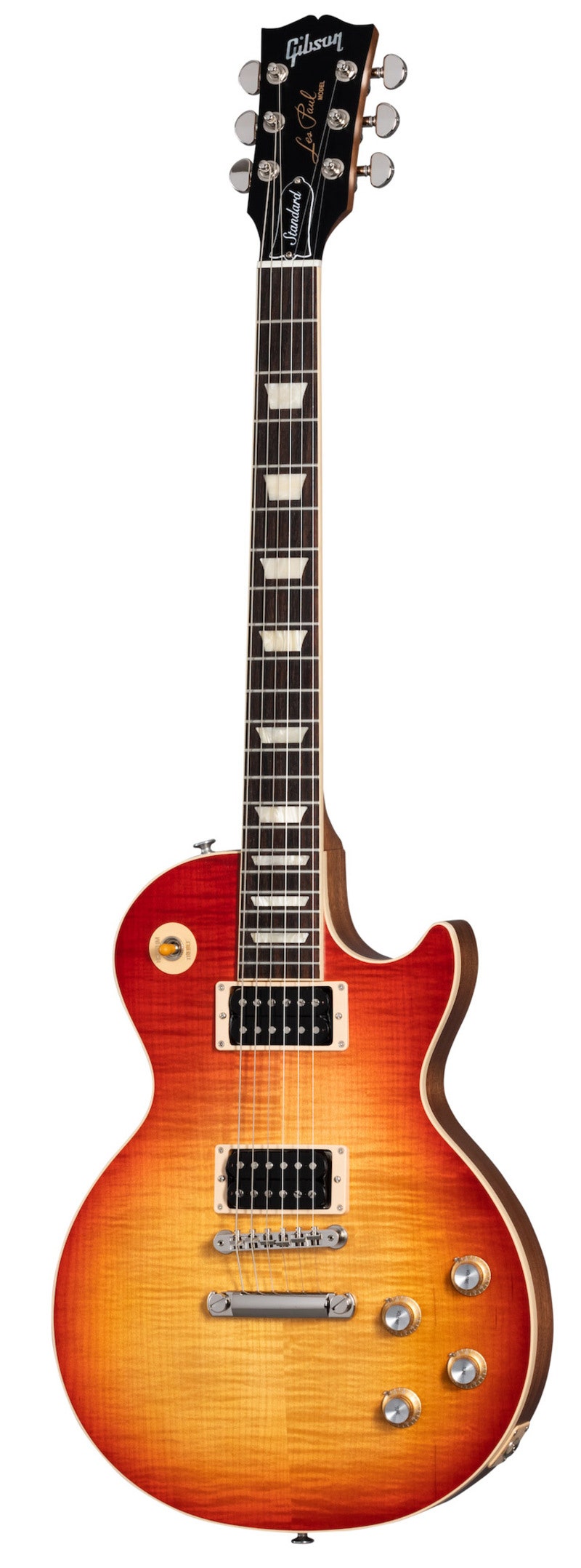 The new Les Paul™ Standard returns to the classic design that made it relevant, played, and loved -- shaping sound across generations and genres of music. It pays tribute to Gibson's Golden Era of innovation and brings authenticity back to life. The Les Paul Standard 60s features a satin nitrocellulose lacquer finish that gives it the look and feel of a long-treasured musical companion. It has a solid mahogany body with an AA figured maple top and a SlimTaper™ 60s-style mahogany neck with a rosewood fingerboard and trapezoid inlays. It's equipped with an ABR-1 Tune-O-Matic™ bridge, aluminum Stop Bar tailpiece, Grover® Rotomatic "Kidney" tuners, and gold Top Hat knobs with Silver Reflectors and Dial Pointers. The open-coil 60s Burstbucker™ pickups are loaded with Alnico 5 magnets and hand-wired to audio taper potentiometers and Orange Drop® capacitors.