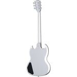 Gibson SG Standard har en solid mahognykropp med rundade kanter. Kroppens form och material ger stabil sustain och jämn ton. Pickguarden är svart, fem-lagers och täcker hela fronten.