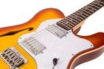 Artikelnummer 1087781Elgitarr, hollowbody, kropp i amerikansk al med lönntopp, hals i lönn, greppbräda i lignum rosa, 25,5" mensur, 22 medium-band, Wilkinson®-mickar, Wilkinson® WVFS-stall