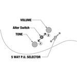 Tre passiva Seymour Duncan Fortuna-pickuper med alnico-magneter – två single coil och en humbucker – ger lägre output och brett dynamiskt omfång. Dyna-MIX9-systemet erbjuder flera pickupkombinationer.