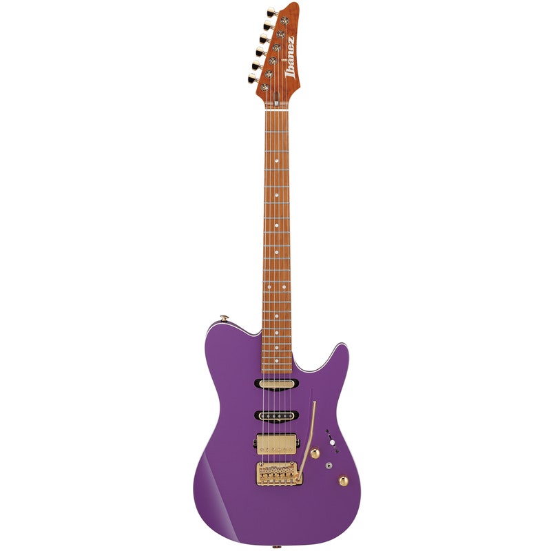 Smakfull guldhardware om verkligen matchar gitarrens lila färg.