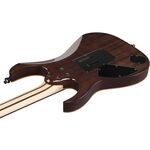Kroppen kombinerar afrikansk mahogny med en topp i ask – en etablerad träkombination som ger ett balanserat och artikulerat ljud. Halsen är av typen Super Wizard AS, en tunn och spelvänlig profil byggd i femdelad lönn och wenge. Greppbrädan i rosenträ är försedd med Tree of Life-inlägg och luminlay-markeringar på sidan för bättre synlighet i mörka miljöer.