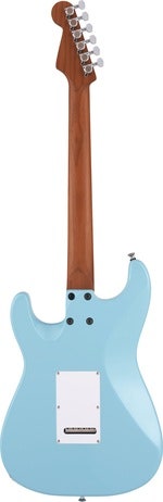 A classic beauty, the MJ Series Signature Misha Mansoor So-Cal 2PT comes in Daphne Blue with color matched licensed Fender® Strat® headstock, white pickguard, parchment skirt-style control knobs and chrome hardware.