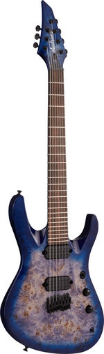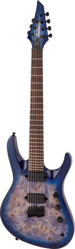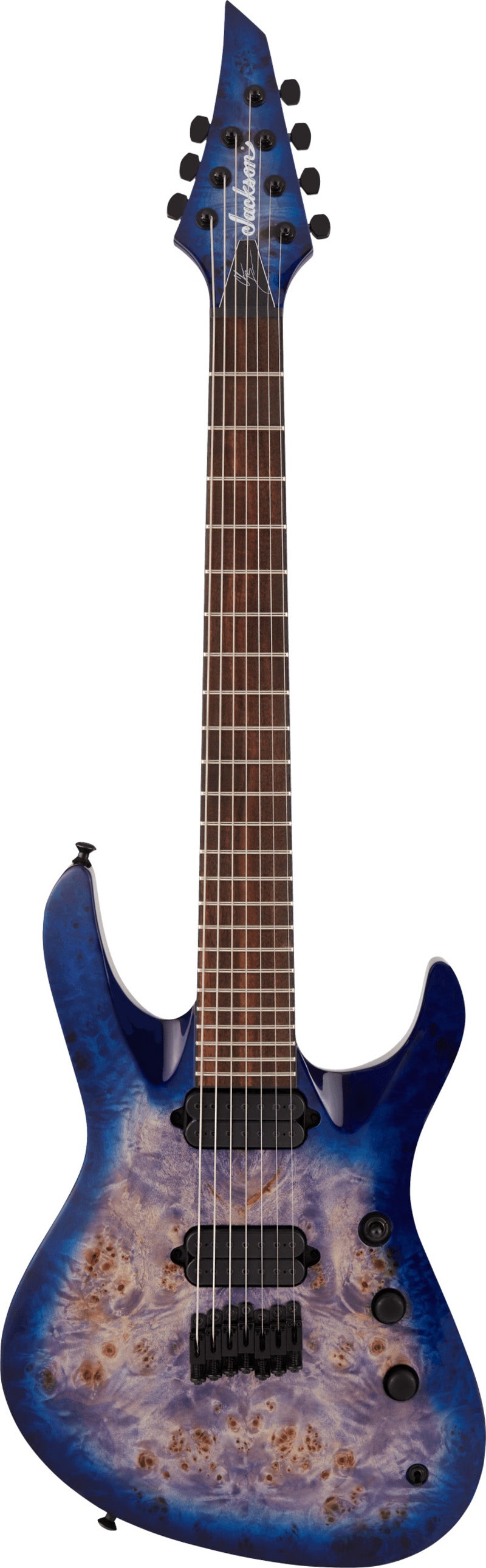 The Jackson® Pro Series Signature Chris Broderick Soloist™ HT7P is a 25.5”-scale, 7- string guitar featuring a resonant mahogany body with an arched poplar burl top and through-body maple neck, scarf joint and graphite reinforcement for rock-solid stability and enhanced sustain. Its 12”-radius bound laurel fingerboard with 24 jumbo frets is ideal for all playing styles, comfortable for both low riffing and soaring leads.