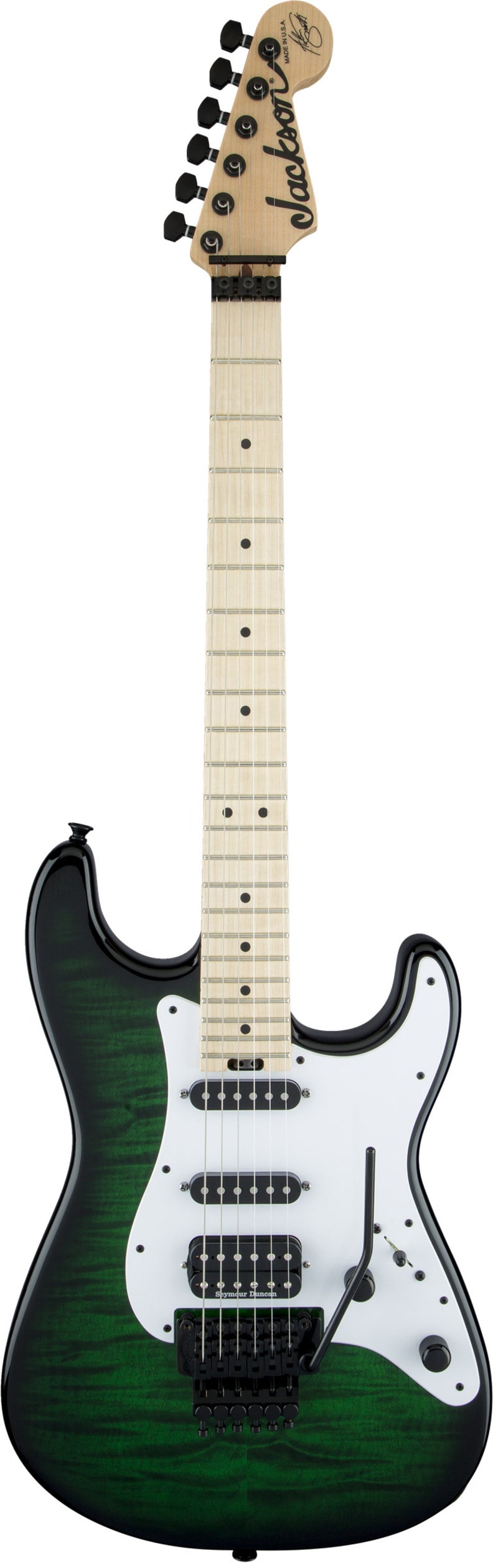 A Seymour Duncan® JB™ TB-4 humbucker in the bridge adds plenty of upper midrange attack, with a tight, articulate low end and harmonically rich highs. Samarium Cobalt Noiseless Single-Coil Strat® middle and neck pickups deliver authentic, noise-free Stratocaster snap with incredible dynamic and magnetic response. A five-way blade selector switch along with single volume and tone controls open up endless tonal possibilities, while the Floyd Rose® Original double-locking tremolo system keeps the guitar in tune through the roughest playing, set after set.