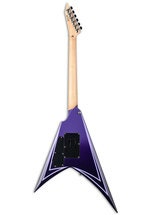 Capturing the essence of one of the world’s most beloved and influential figures in metal music, the LTD Alexi Hexed is among the final guitars designed by Children of Bodom/Bodom After Midnight frontman Alexi Laiho. The LTD Alexi Hexed is offered in an offset V shape with neck-thru-body construction at 25.5” scale. It features a three-piece thin u-shaped maple neck with natural satin finish for smooth and fast playability, alder body wings, and a Macassar ebony fingerboard (scalloped from frets 19-24) with 24 extra-jumbo frets, sawtooth inlays, and glow-in-the-dark side markers. Components on this outstanding guitar include Grover tuners, a double-locking Floyd Rose 1000 bridge, chrome hardware, and a single EMG HZ F-H2 passive pickup with volume control. This ceramic high-gain pickup offers excellent presence and clarity with a punchy response. Available in Purple Fade finish with light purple pinstripes, with matching back and sides. Includes deluxe ESP hardshell case.