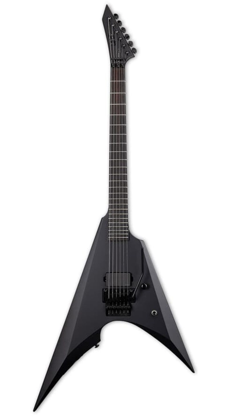 The LTD Black Metal Series are guitars that are comparable in build quality to our LTD Deluxe “1000 Series” instruments, but with a dark and menacing design theme of all-black finish, components, and hardware, a single premium-quality pickup, Macassar ebony fingerboards with no inlays and glow-in-the-dark side markers, and even a newly-designed black metal LTD logo on the headstock. The Arrow Black Metal takes the bold, extreme Arrow body shape and presents it in the killer Black Metal design scheme, with a single aggressive EMG 81 pickup, a single volume control, and an EMG TKO kill switch.