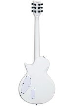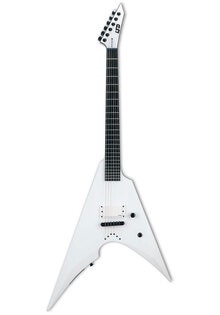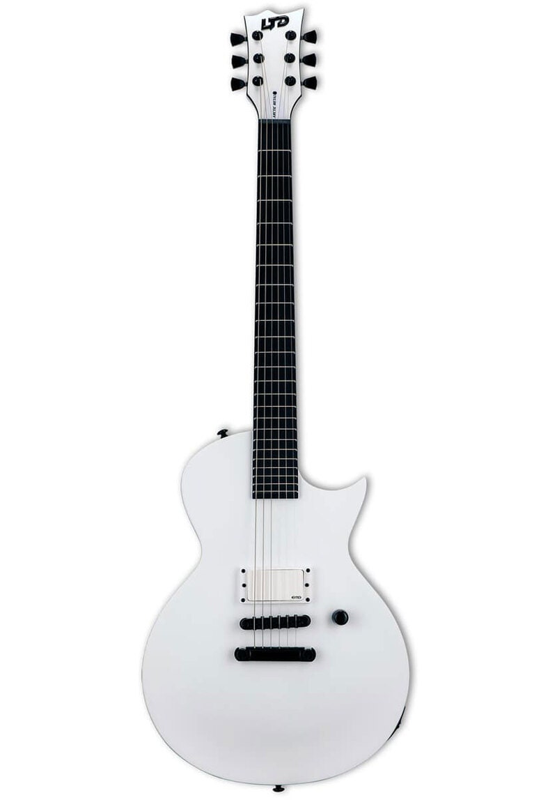 The LTD Arctic Metal Series takes the same design theme of our Black Metal Series and flips the color scheme from the darkest of blacks to the coldest of frozen wastelands. Comparable in build quality to our LTD Deluxe “1000 Series”, Arctic Metal instruments feature a Snow White Satin finish, a single premium-quality pickup with matching white cover, and Macassar ebony fingerboards with no inlays and glow-in-the-dark side markers. The EC Arctic Metal is based on the popular single-cutaway ESP Eclipse shape. It offers set-thru construction for smooth access to the highest frets at 24.75” scale, an aggressive EMG 81TW pickup with black logo, a single volume knob with push-pull control to split the pickup, and 24 extra-jumbo stainless steel frets.