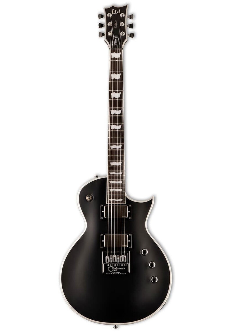 Guitars in the LTD Deluxe EC-1000 Series are designed to offer the tone, feel, looks, and quality that working professional musicians require in an instrument, while remaining affordable enough for serious players. With the EC-1000 EverTune BB, the “BB” stands for this guitar’s extra-thick metallic silver bold binding, which you’ll notice right away. But this guitar is more than great looking, with its set of EMG 60TW-R (neck) and EMG 81 (bridge) pickups, and a push-pull control to split the neck pickup. It offers 24 extra-jumbo stainless steel frets and the acclaimed EverTune constant tension bridge to keep your guitar in perfect tune at all points on the fingerboard under almost all circumstances.