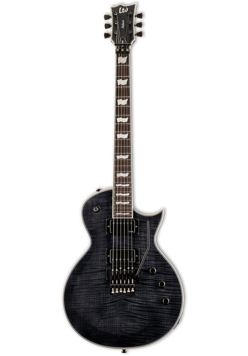 Guitars in the LTD Deluxe EC-1000 Series are designed to offer the tone, feel, looks, and quality that working professional musicians require in an instrument, while remaining affordable enough for serious players. This EC-1000FR model adds a Floyd Rose 1000SE bridge with stainless steel screws, along with a great-looking flamed maple top on its mahogany body. Its set of EMG 66TW (neck) and EMG 57F (bridge) active pickups offer outstanding tones, with a push-pull control to split the neck pickup. It also includes 24 extra-jumbo stainless steel frets on its Macassar ebony fingerboard.