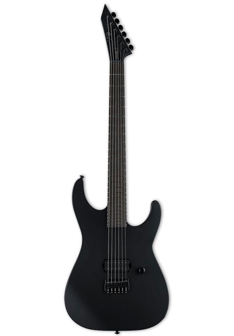 The LTD Black Metal Series are guitars that are comparable in build quality to our LTD Deluxe “1000 Series” instruments, but with a dark and menacing design theme of all-black finish, components, and hardware, a single premium-quality pickup, Macassar ebony fingerboards with no inlays and glow-in-the-dark side markers, and even a black metal LTD logo on the headstock. The M-HT Black Metal offers this design in a 6-string 25.5” scale hardtail version with an alder body and three-piece extra-thin U-shaped maple neck. Its features include a Hipshot bridge with string-thru body setup for sweet sustain and stability. For brutal tones and excellent dynamics, you get a single direct-mounted Seymour Duncan Blackened Black Winter passive pickup, with a push-pull control for coil splitting.