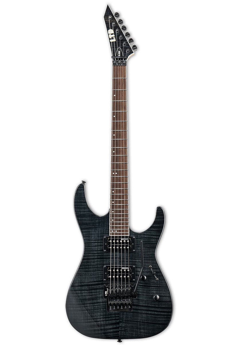 With the M-200, guitar players who are ready to shred have a truly affordable, high-quality guitar. The classic flat “slab” body of the M Series is offered here in mahogany, with a maple neck and roasted jatoba fingerboard with 24 extra-jumbo frets. These speedy bolt-on models with extra thin flat maple necks are being offered in Black and Neon Pink finishes, or with a flamed maple top in the M-200FM in See Thru Red and See Thru black finishes. All of them feature an LTD by Floyd Rose tremolo and powerful, punchy ESP Designed pickups.