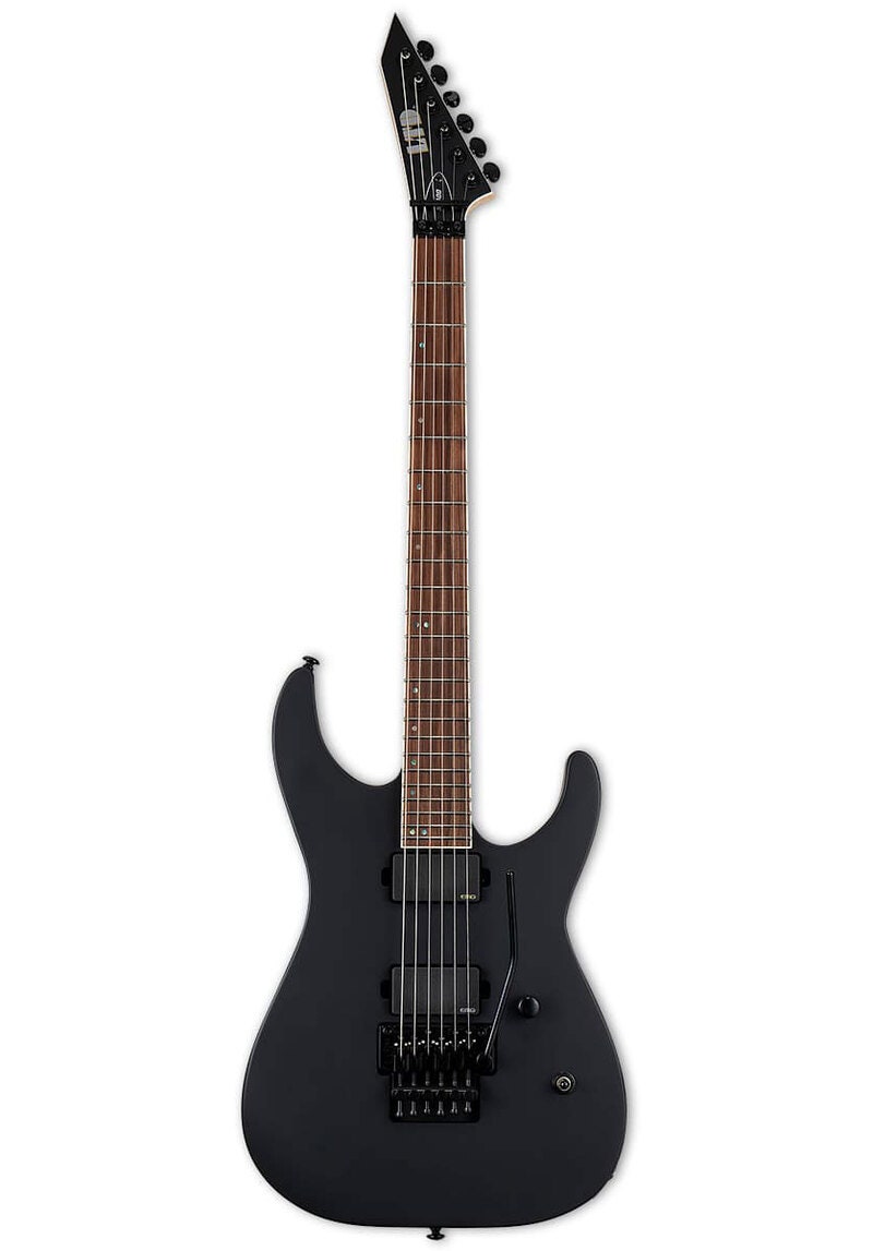 The LTD 400 Series is designed with the professional performing and recording musician in mind, but is available at a price that even casual players can afford. With the M-400, you get a sturdily well-built bolt-on shredding machine, complete with the classic M-style extra thin flat neck profile. Available in this great-looking Black Satin finish, as well as a mahogany-topped passive-pickup version with the M-400M, its mahogany body and fast three-piece maple neck are constructed at 25.5" scale, with a 24 extra-jumbo frets on its pau ferro fingerboard. Like the rest of the M Series, simplicity is the key to the M-400, with a single volume knob and a selector to choose between its world-standard active EMG 85/EMG 81 pickup set. The M-400M also includes Grover tuners and a Floyd Rose bridge.