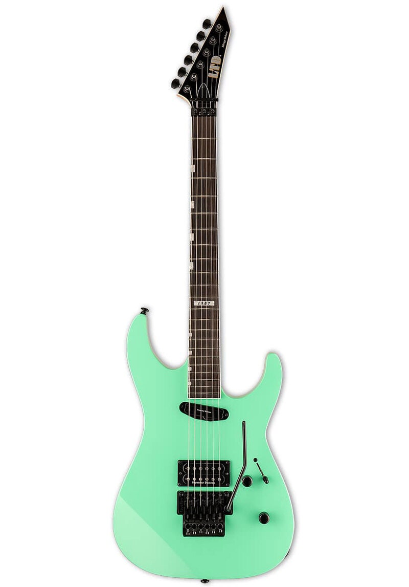 While ESP first got started in 1975 as a small repair shop in Tokyo, it was really toward the mid ‘80s when our guitars and basses grabbed the attention of players around the world. The LTD ’87 Series are faithful recreations of this set of instruments from ESP’s 1987 catalog. Based on the original ESP Mirage body shape, the LTD Mirage Deluxe '87 is a bolt-on shred machine with an alder body and three-piece extra thin U-shaped maple neck being made available in Pearl Pink and Turquoise finishes. These guitars feature a Floyd Rose 1000 bridge and a pickup set that includes a Seymour Duncan Distortion TB-6 (with original style bobbins and a push-pull control to split the coils) in the bridge and a Seymour Duncan Hot Rail single coil in the neck position.