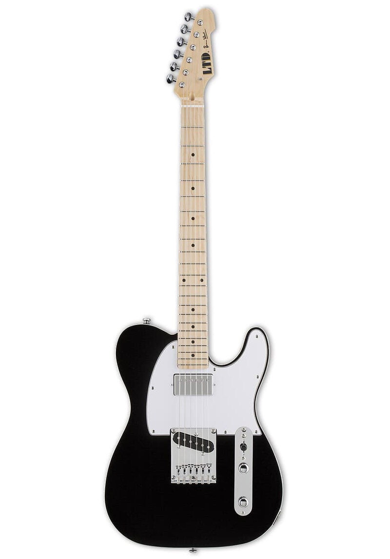 Previously available only as a guitar from ESP's Custom Shop, the LTD Ron Wood offers affordable excellence in a traditional guitar style. Built to the specification of the legendary Rolling Stones guitarist, the LTD Ron Wood is a bolt-on design that pairs a comfortable fully-bound alder body to a maple neck with maple fingerboard and 22 extra-jumbo frets. Its sound is powered by a set of high-quality Seymour Duncan pickups: a ‘59 humbucker in the neck and a Hot Tele single-coil in the bridge. It includes a bone nut, LTD vintage tuners, and an LTD fixed bridge. Available in Black finish.