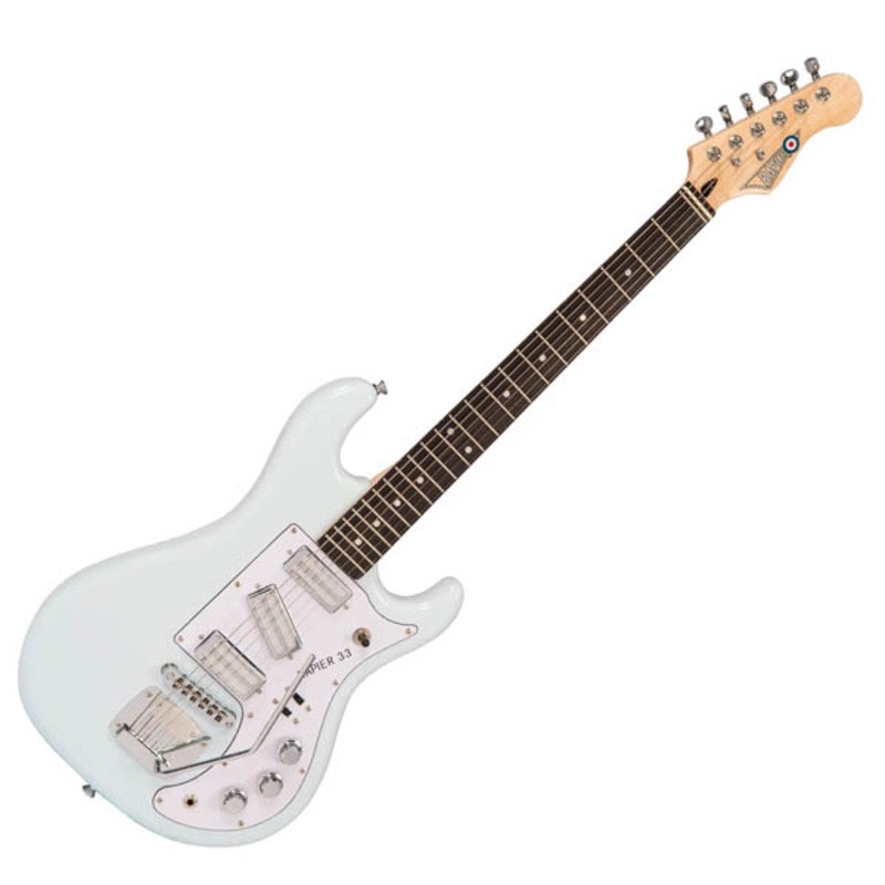 Artikelnummer 1077861The stunning new generation Rapier 33 is a product design from Alan Entwistle, the UK genius guitar designer responsible for a host of successful guitar lines and accessories. The original Rapier 33, instantly recognisable with its forward slanted middle pickup, was the solid bodied electric that played a major role in the industry of British guitars. This legendary guitar served countless up and coming 60’s British Beat groups and helped launch the careers of many guitarists in the 60’s and 70’s. Whilst Entwistle has successfully retained all the glorious charms and visual characteristics of the original ‘legendary’ Rapier 33, significant and meticulous attention has been made within hardware upgrades, construction and playability for this fabulous new model.