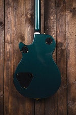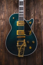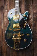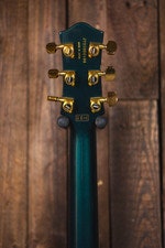 Modellen har Cadillac Green-finish, svart plektrumskydd och guldfärgad hårdvara. Ett hårt case medföljer.