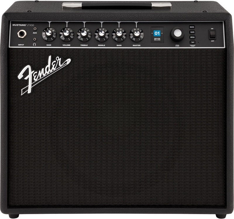 Mustang® LTX50 är en digital gitarrförstärkare som kombinerar moderna funktioner med klassisk design. Den är utrustad med en 12" Celestion® G12P-80-högtalare och lämpar sig för både övning och livespelning.