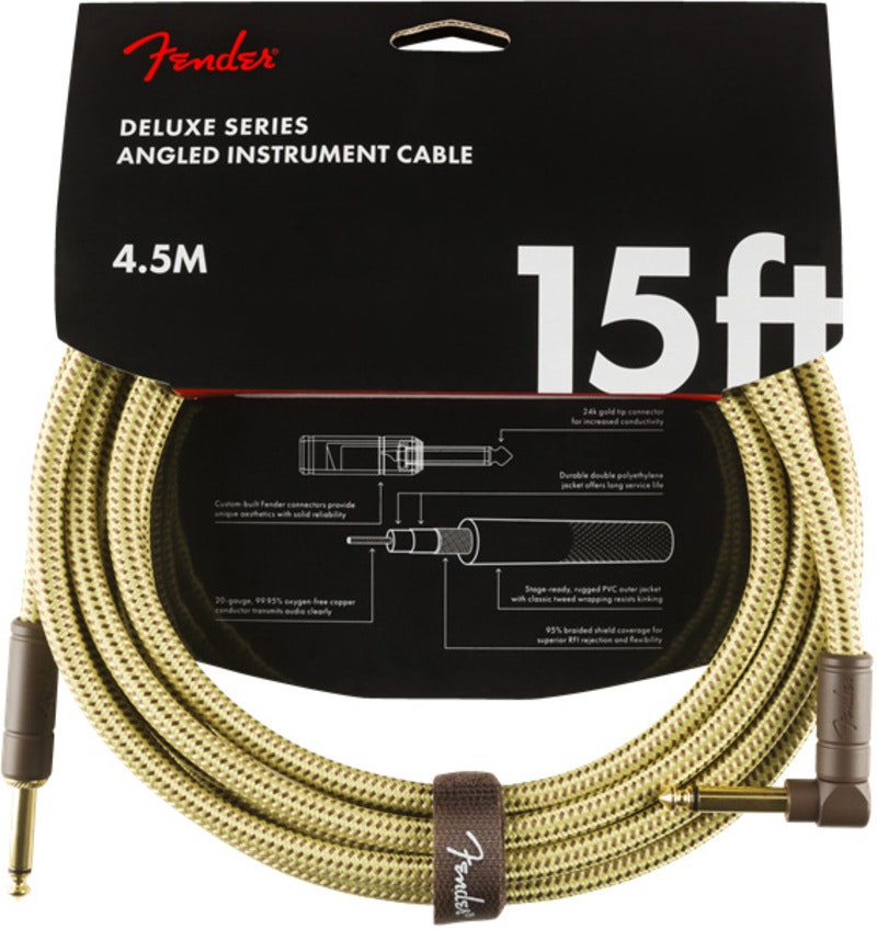 Fender Cable Deluxe 15' Straight/Angled Tweed