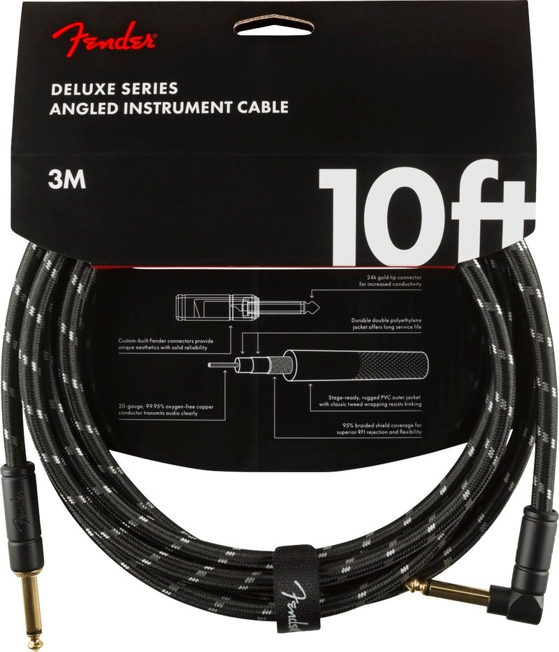 Fender Deluxe Instrument Cable Angle/Straight 10' Black Tweed