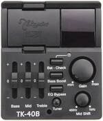 Takamine TK-40B preamp-system med bland annat 3-bands EQ, gain-kontroller, bass-boost switch, EQ bypass switch & inbyggd kromatisk stämapparat gör giget smidigt värre.