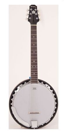 Banjo, 6 strängar, mahogny och aluminium kropp, rosewoodgreppbräda