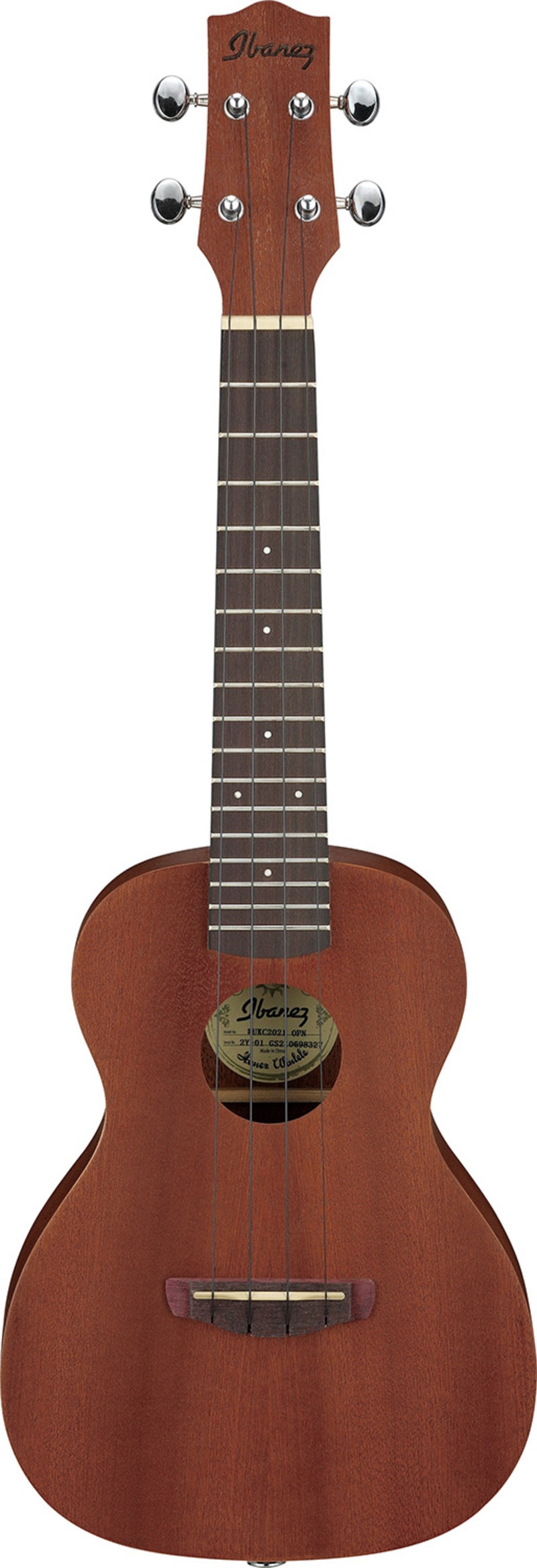Ibanez är stolta att presentera ett urval av Sopran och Concert ukuleles. Från enkla skolmodeller till betydligt mer avancerade modeller, utan och med mikrofon. UKC100 har s.k. Side Sound Port, extra ljudhål i sargen emot dig, så du hör ukulelens ljud bättre.