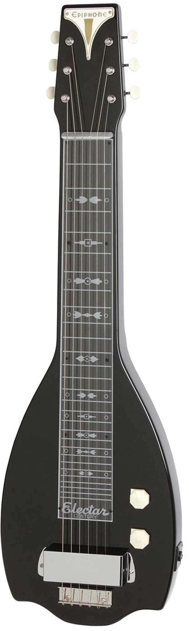 Epiphone presents the Electar Inspired by "1939" Century Lap Steel Outfit, a one of a kind reissue of the Art Deco styled Hawaiian lap steel guitar originally designed by Herb Sunshine, Epiphone's legendary salesman, electronics developer, and a good friend of founder Epi Stathopoulo.
