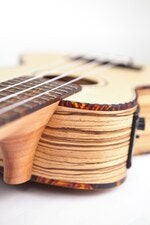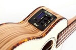 Artikelnummer 1048208The 15-fret Reno RU210E Ukulele has a solid spruce top, and Zebra back and sides. This sweet sounding ukulele is appointed with a Tortoise shell binding and Fishbone rosette. This model also has a built-in Belcat preamp with a chromatic tuner. Natural.
