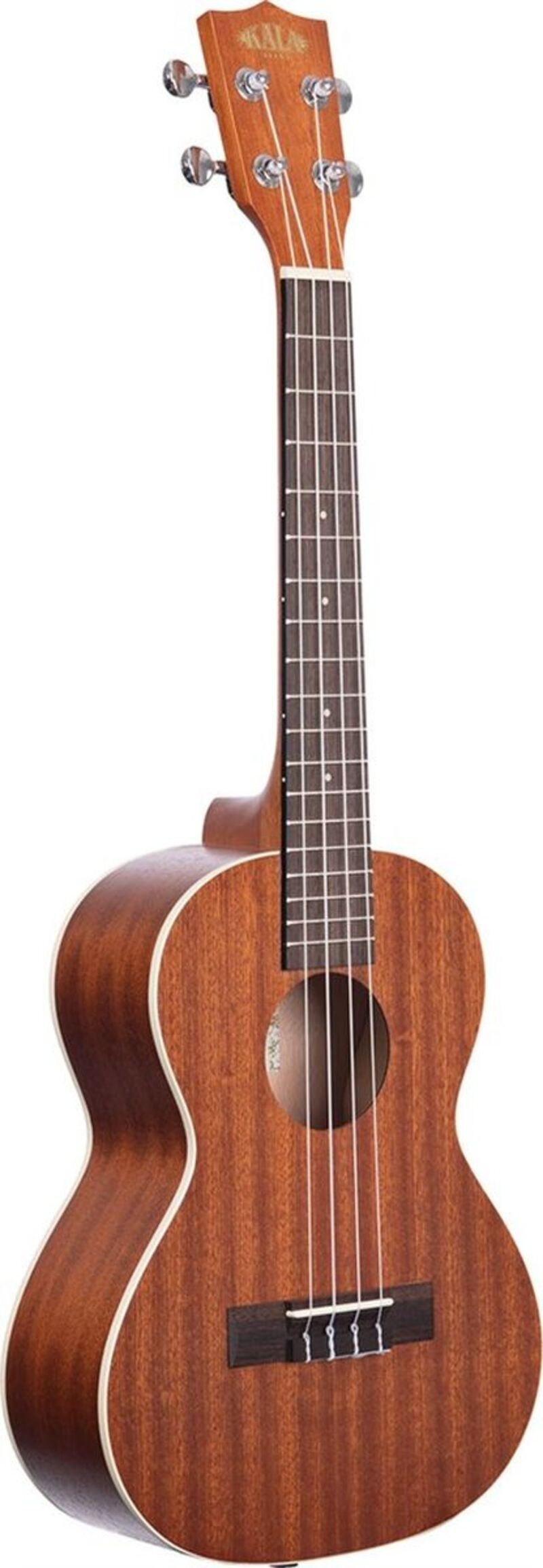 KA-TE är en tenorukulele byggd helt i mahogny, både kropp och hals, med en sidenmatt finish som ger en naturlig känsla vid spel. Greppbrädan i rosewood bidrar till ett varmt tonregister och en bekväm spelkänsla.